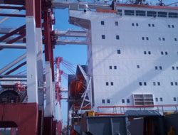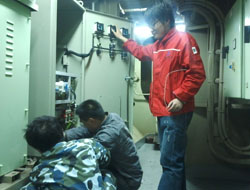 2011年11月3日凌晨3點(diǎn),中國(guó)遠(yuǎn)洋運(yùn)輸集團(tuán)中河號(hào)這艘載滿4000個(gè)集裝箱的貨輪緩緩?fù)?吭谇鄭u港集裝箱碼頭,之前奧科公司工程人員接到集團(tuán)船舶檢修人員的通知,貨輪原有陰極保護(hù)系統(tǒng)因超出服役年限現(xiàn)已癱瘓,需對(duì)系統(tǒng)恒電位儀及部分輔助產(chǎn)品進(jìn)行檢測(cè)更換,不過(guò)貨輪的?繒r(shí)間是從凌晨3點(diǎn)到中午11:30,最多為8個(gè)半小時(shí)的檢測(cè)、安裝、調(diào)試時(shí)間可謂時(shí)間緊任務(wù)重。這對(duì)于我們這支久經(jīng)前線施工的工程技術(shù)隊(duì)伍是一個(gè)不小的考驗(yàn),在貨輪機(jī)修人員的配合下經(jīng)過(guò)近6個(gè)小時(shí)的緊張工作,系統(tǒng)安裝調(diào)試圓滿結(jié)束,并得到了業(yè)主一致好評(píng)。